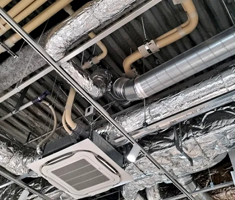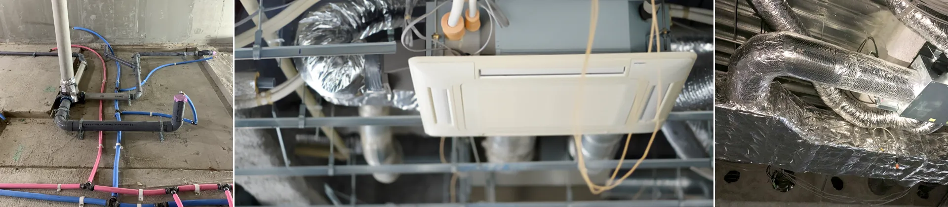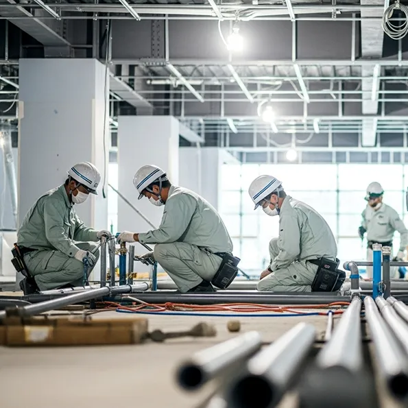 空調工事では、エアコン設備の設置や配管作業を通じて建物内の快適な環境づくりに携わります。